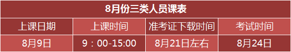 9月份三类人员(专职安全员、项目负责人、企业负责人)报名截止日期为9月5日,需要的学员可提前进行报名!