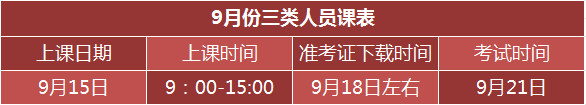 10月份三类人员(专职安全员、项目负责人、企业负责人)报名截止日期为10月5日,需要的学员可提前进行报名!
